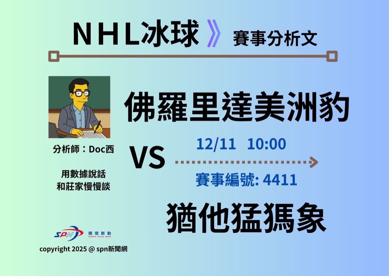 NHL台灣運彩分析 < 12/11冰球戰情室:佛羅里達美洲豹 @ 猶他猛獁象 — 莊家為何無視球星缺陣看好大分?>