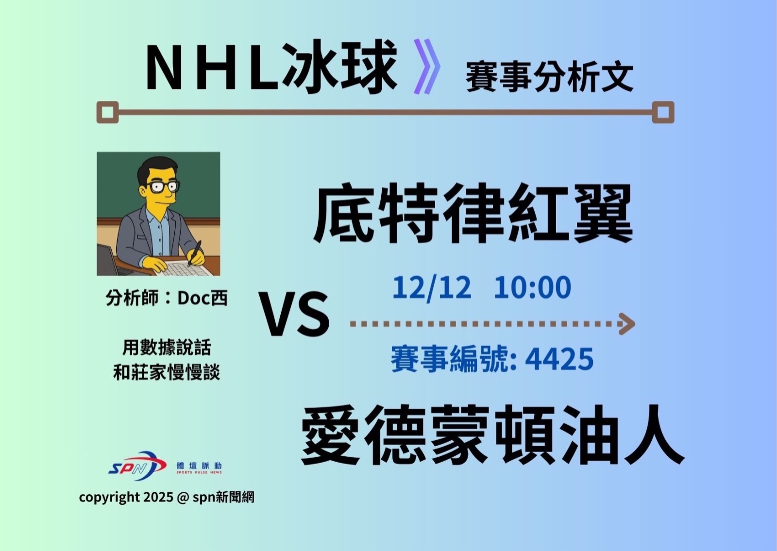 NHL台灣運彩分析 < 12/12冰球戰情室:底特律紅翼 @ 愛德蒙頓油人 — 當麥大帝遇上「漏洞門將」時,為何莊家敢開小分?>