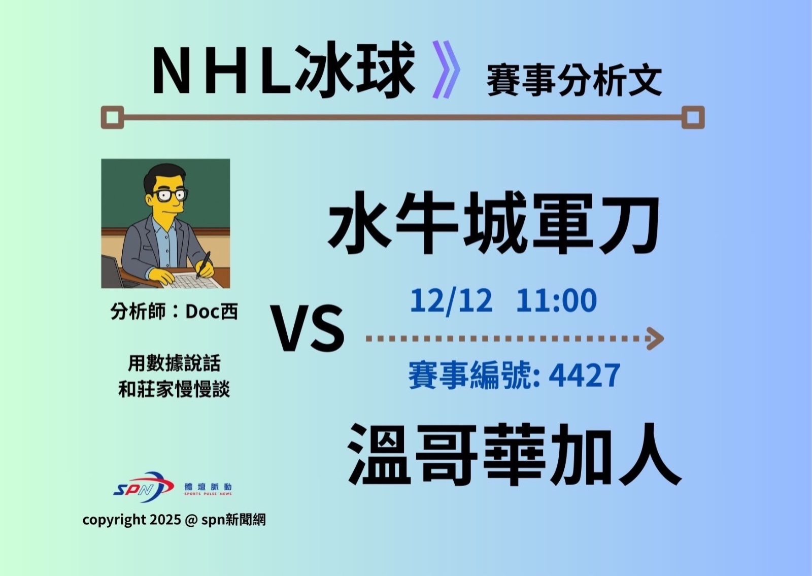 NHL台灣運彩分析 < 12/12冰球戰情室:傷兵與近況的雙重打擊:水牛城軍刀 @ 溫哥華加人>