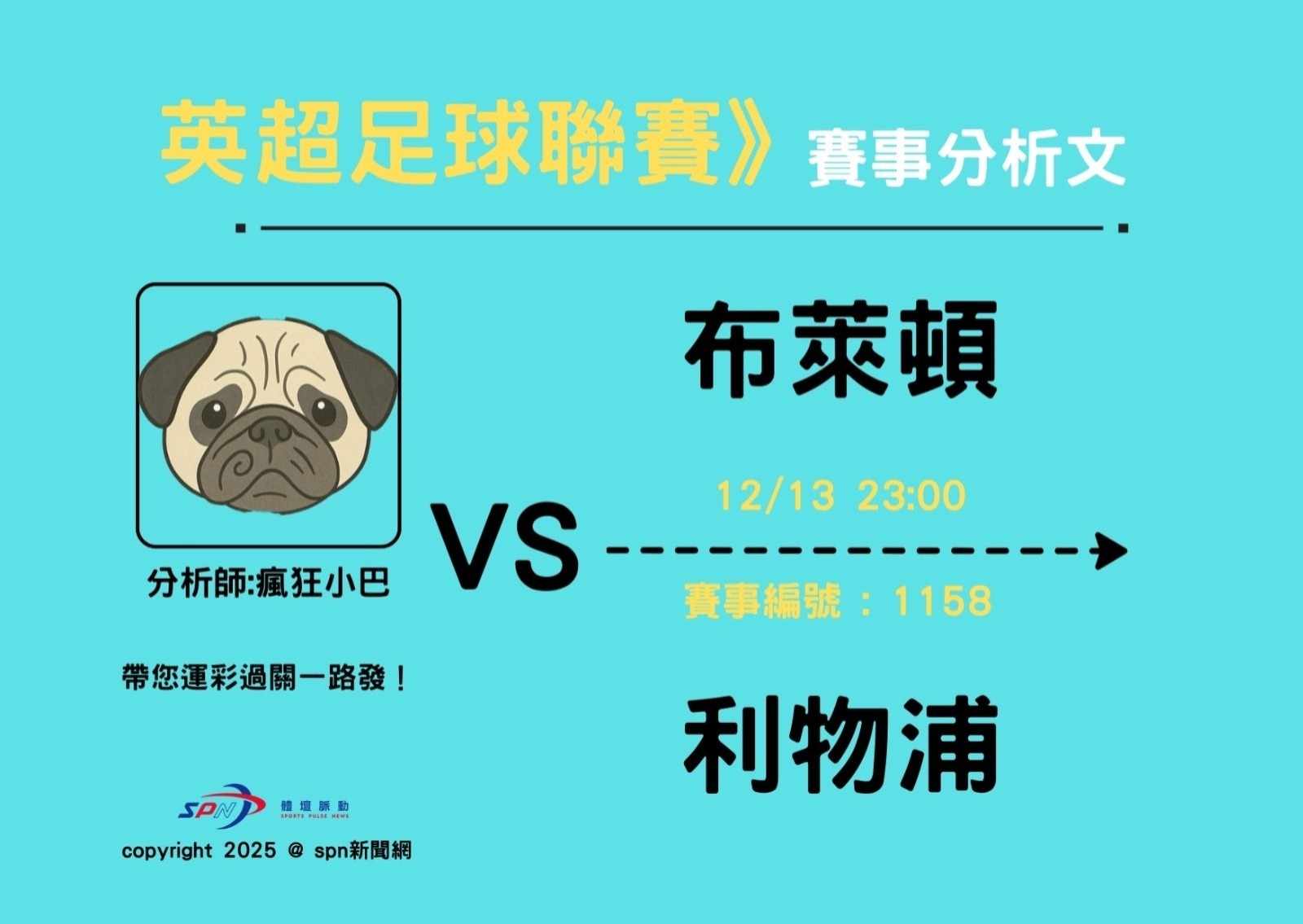 提醒您:未成年人不得購買或兌領彩券,運動比賽有輸有贏,分析文僅為投注建議參考方向,不保證贏球,請衡量自身情況節制投注,其他詳細規範請參閱台灣運彩官方網站,瘋狂小巴關心您。