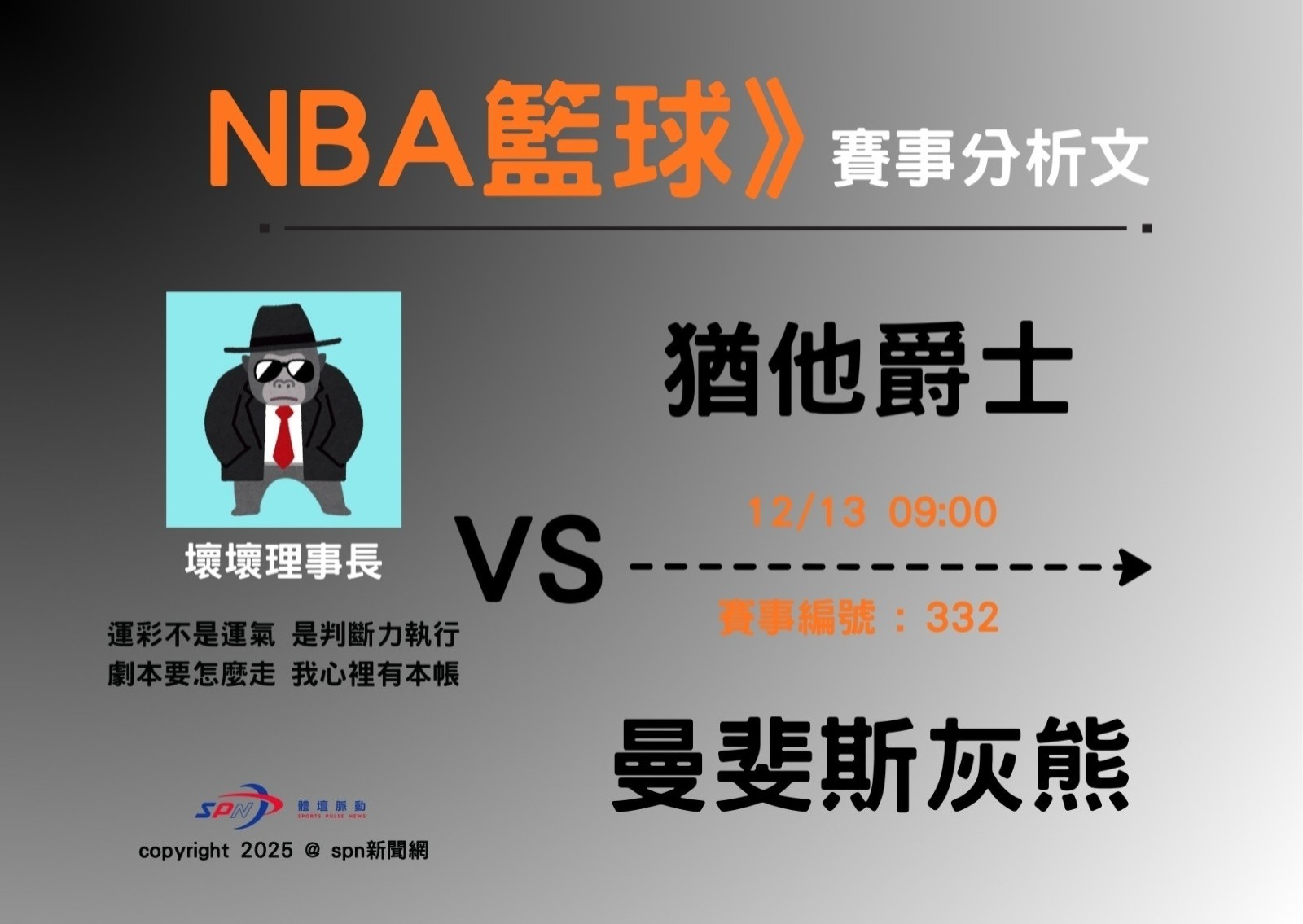 台灣運彩今開出 猶他爵士作客曼菲斯灰熊 之 NBA 盤口,乍看之下,這是一場「再正常不過」的比賽: 主隊灰熊主場、聲量高、不讓分低賠,讓分幅度卻不深,對多數玩家而言,幾乎是直覺就會買灰熊的一場。 但正是這種「看起來太合理、太舒服」的盤,才是近期台灣運彩最常用來測試市場貪心的盤型。