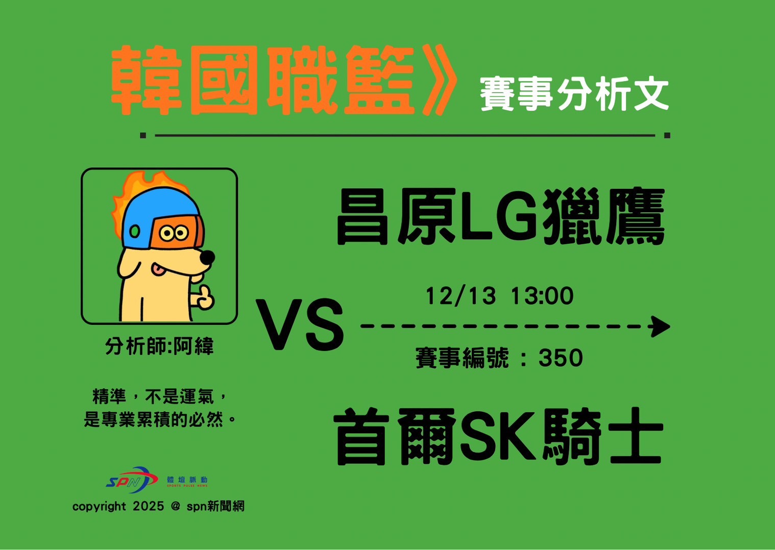 賽事編號:350 比賽時間:12/13 13:00 比賽地點:首爾 SK 騎士主場 分析師:阿緯|體壇脈動專欄