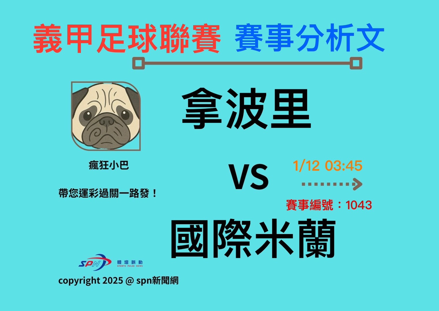義甲聯賽在台灣時間1月12日凌晨3時45分將迎來義甲聯賽拿波里出戰國際米蘭,義甲龍頭對上前四名的拿波里,兩隊都十分需要積分來鞏固排名,本場勢必會全力搶奪勝利,巔峰對決的情況下戰事將會如何發展,瘋狂小巴帶您一探究竟。