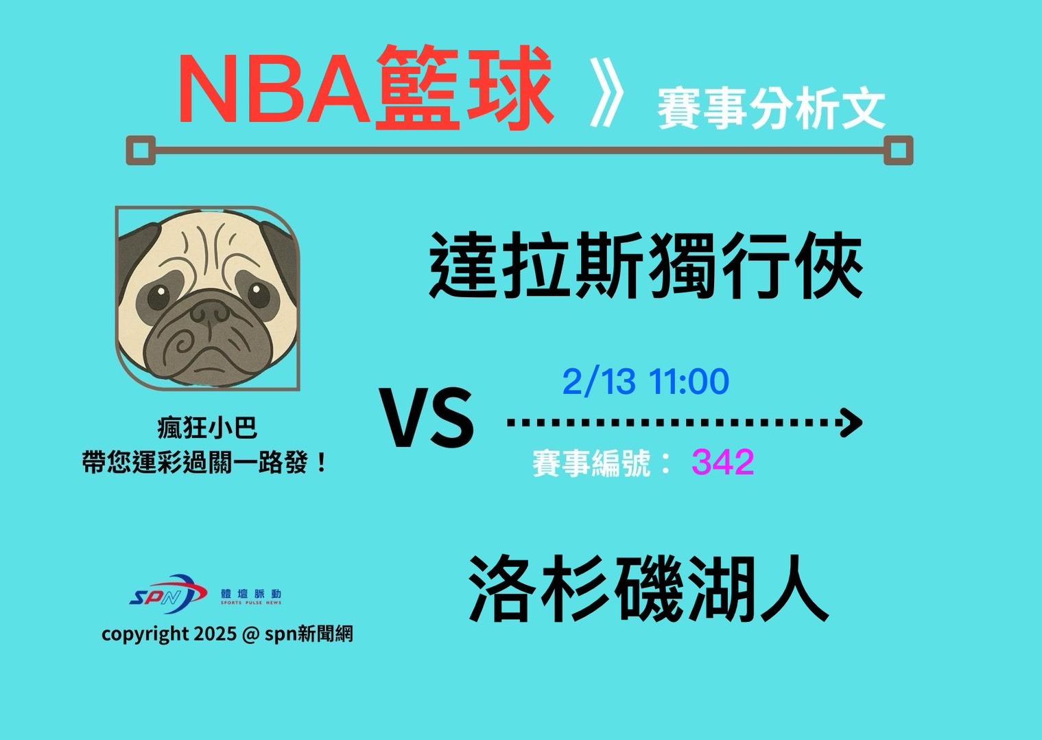 NBA例行賽於台灣時間2月13日上午11時,將迎來獨行俠客場出戰湖人,休息過後的湖人面對八連敗獨行俠,是否可以報上場大比分落敗的仇,還是獨行俠能夠逆勢止敗,最終戰況將會如何發展,瘋狂小巴帶您一探究竟。