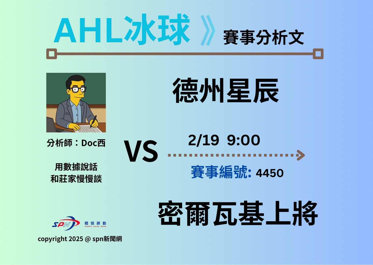 AHL台灣運彩分析 < 2/19冰球戰情室:星辰 vs 上將:戰績懸殊,但莊家預警「低比分」>