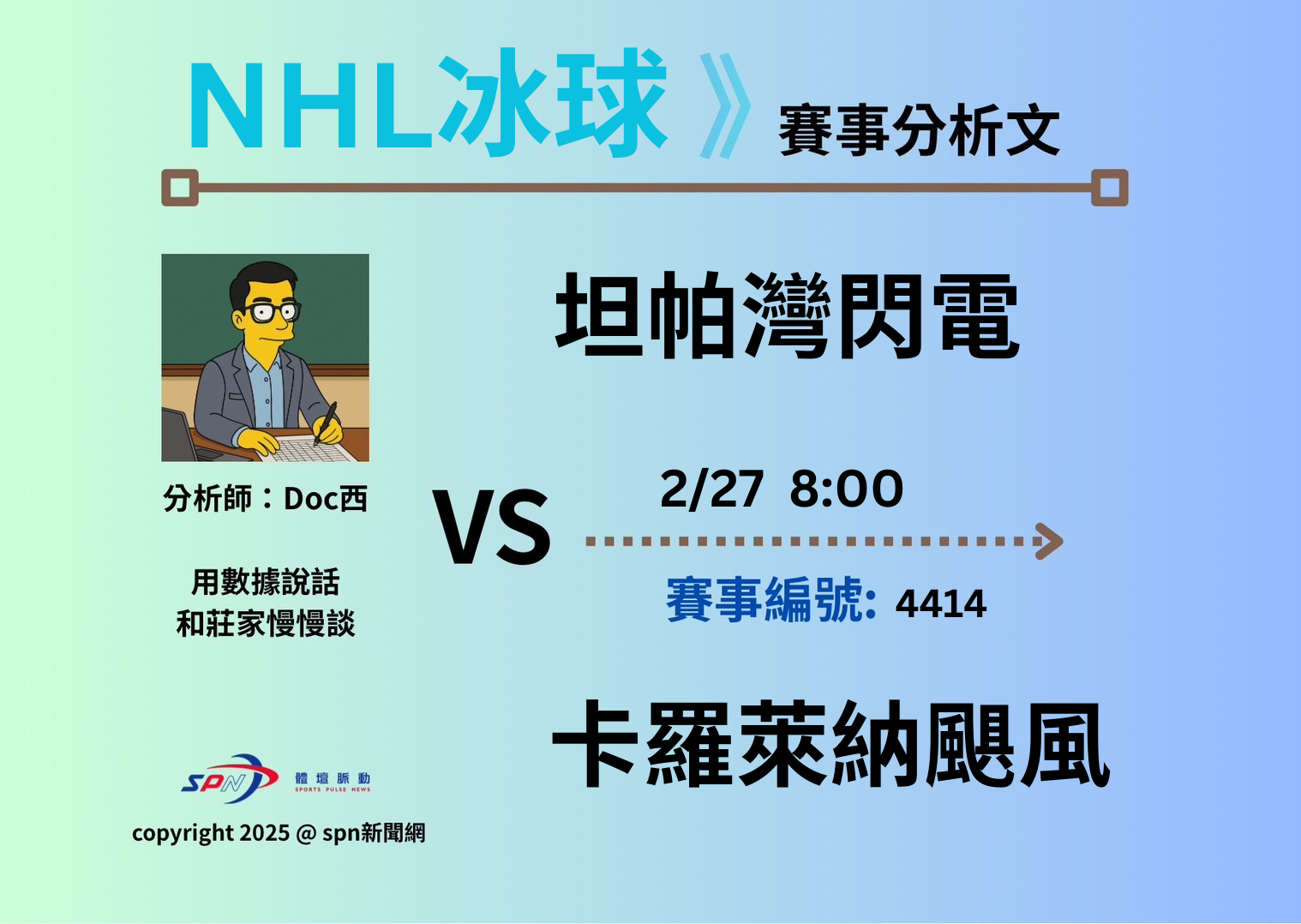 NHL台灣運彩分析 < 2/27冰球戰情室:閃電 vs 颶風:強強對話,但門戶洞開?>