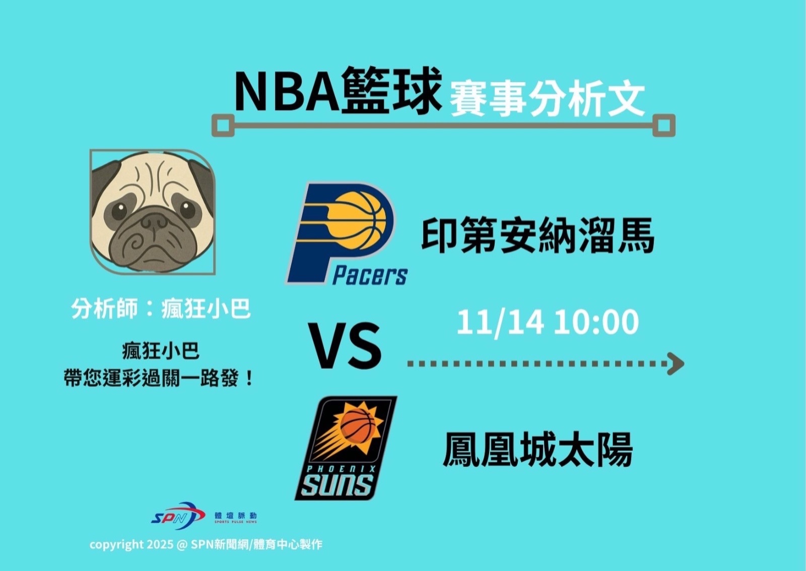NBA運彩分析》例行賽印第安納溜馬隊客場出征鳳凰城太陽