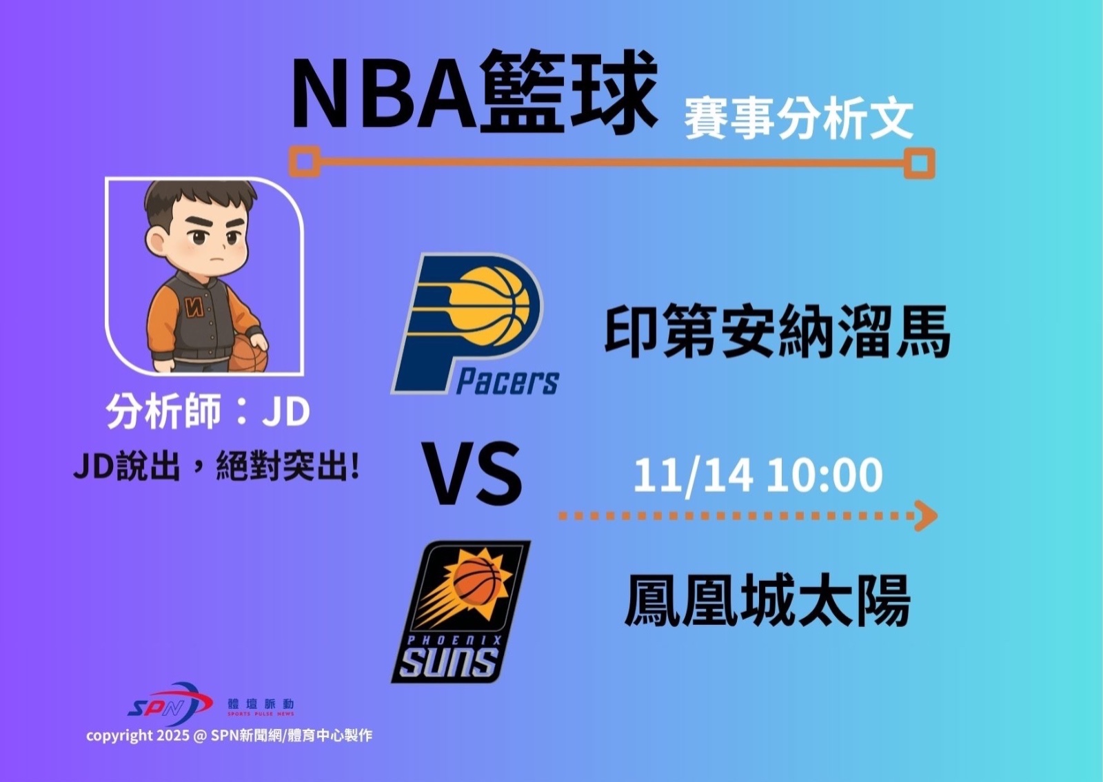 台灣運彩精選於台灣時間11/14,太陽回到主場B2B出戰東區來作客的後段班溜馬,這場可以關注的點為太陽連續出賽的防守狀態,太陽在主場的防守失分平均為107.3,對上溜馬在客場作戰較低的平均得分,如果以這為比賽太陽制服組隊內基本設定的話,絕對會利用高壓迫去限制溜馬的進攻有利搶下二連勝。
