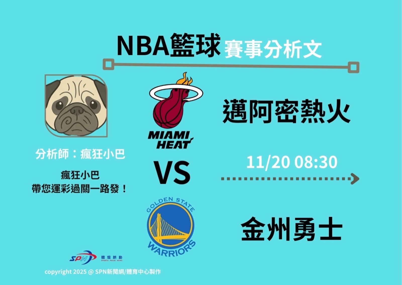 NBA例行賽台灣時間11月20日上午8時30分將迎來金州勇士出戰邁阿密熱火隊。圖/spn體育中心製作