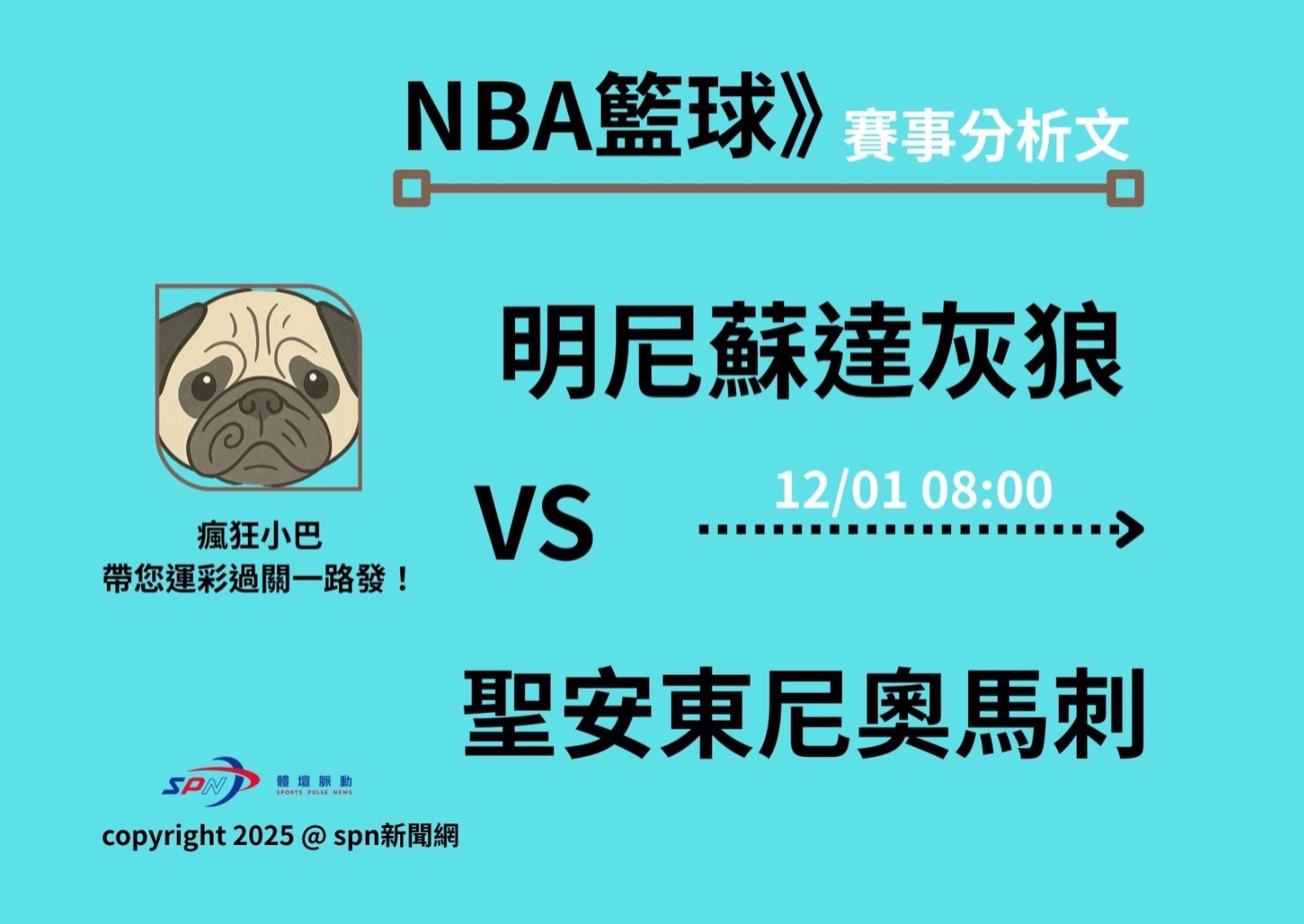NBA例行賽於台灣時間12月1日上午8時將迎來馬刺隊客場出戰灰狼,兩隊本季首次交手,聯盟西區排名僅差距一名的情況下,誰能拿下本場勝利將佔據有利位置,雙方勢必會全力搶勝,戰況將會如何發展,瘋狂小巴帶您一探究竟。