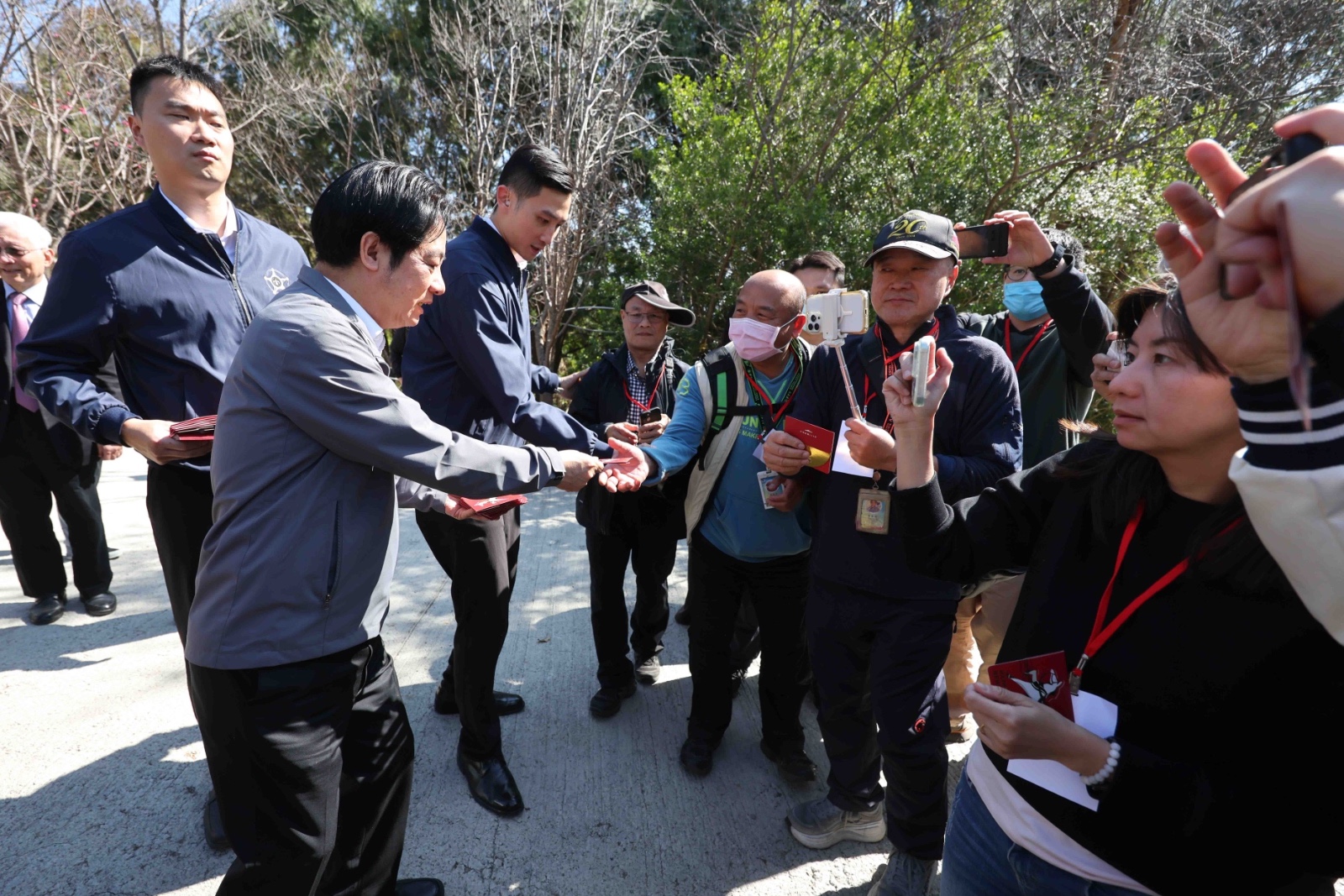 總統賴清德今前往台中市大坑山區,拜訪88歲獨居的邱阿公、做紅龜粿、圍爐過年,現場洋溢濃濃年味,並現場發放總統府紅包給記者。圖/記者翁清雅攝影