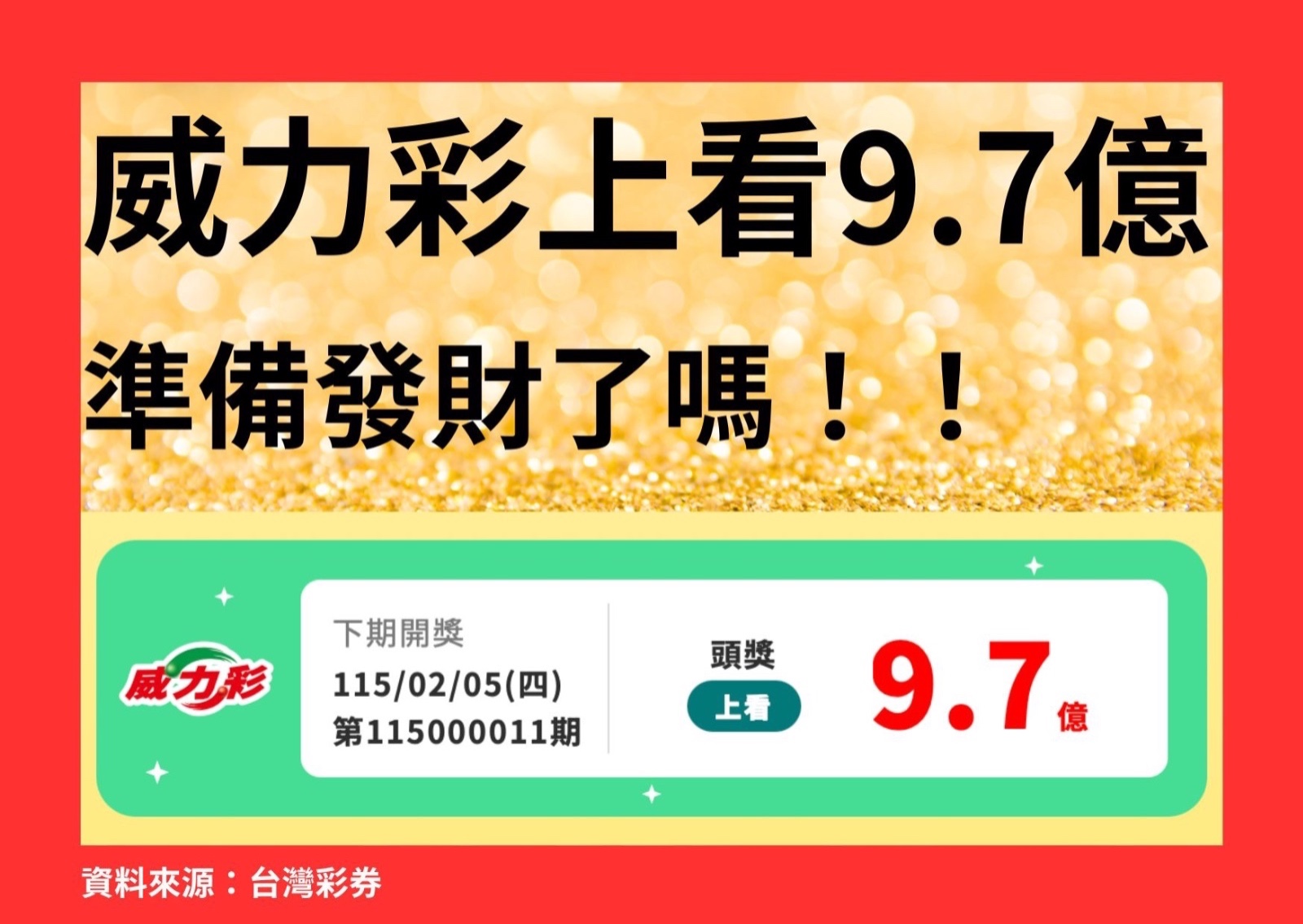 連續28期無人抱走頭獎,彩券買氣再度升溫,最新一期頭獎彩金一舉衝上9.7億元。圖/SPN新聞網製作