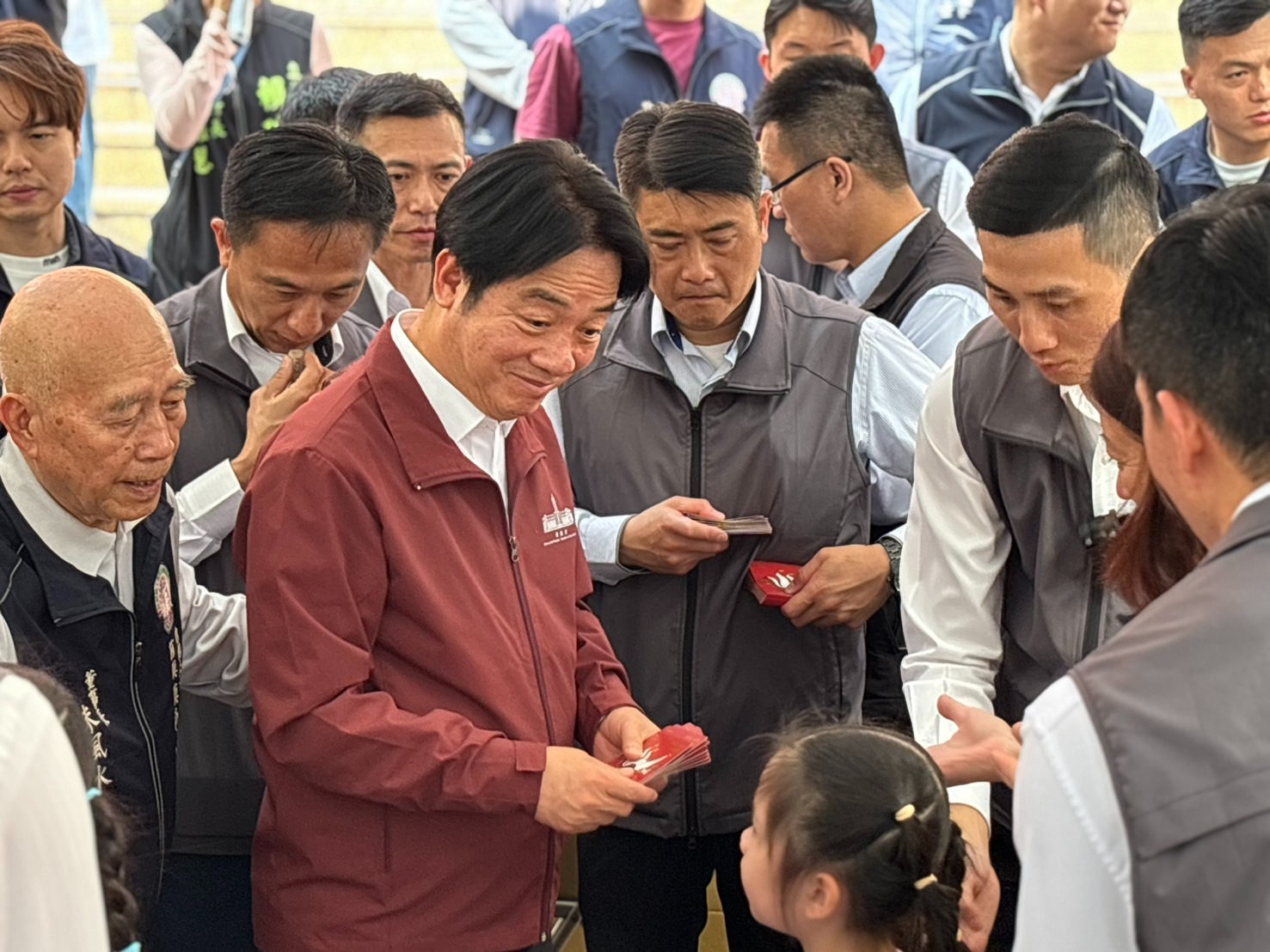 金馬年大年初二總統賴清德南下高雄與市長陳其邁一同前往前鎮鎮南宮參拜,同時為全國人民祈福,祈求神明保佑台灣國泰民安、風調雨順,並發放新春祈福小福袋給現場熱情守候的民眾。