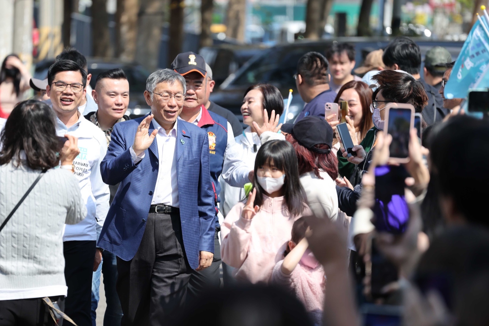 柯文哲到台中市北屯的芒果樹福德宮發放小紅包受到民眾熱烈歡迎。圖/記者翁清雅攝影