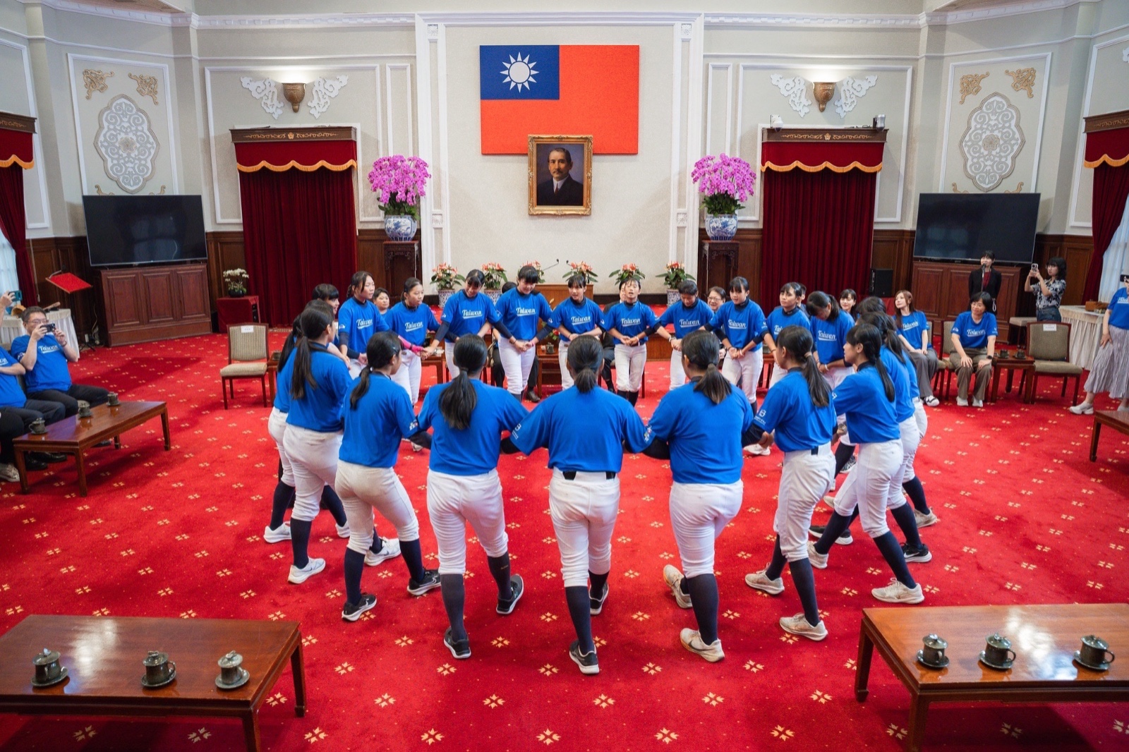 出席晉見的貴賓包括運動部長李洋、無任所大使劉柏君、立法院女子運動外交促進會黃捷會長、副會長蘇巧慧與吳沛憶、立法委員吳思瑤,以及總統府秘書長潘孟安等,共同見證這場屬於台灣女子壘球的榮耀時刻。