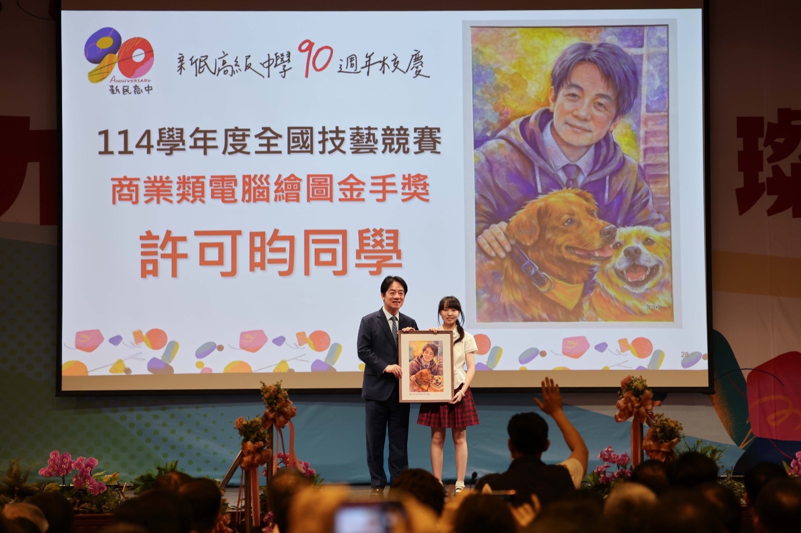 新民高中學生贈送賴清德與愛犬的畫像。圖/記者翁清雅攝影
