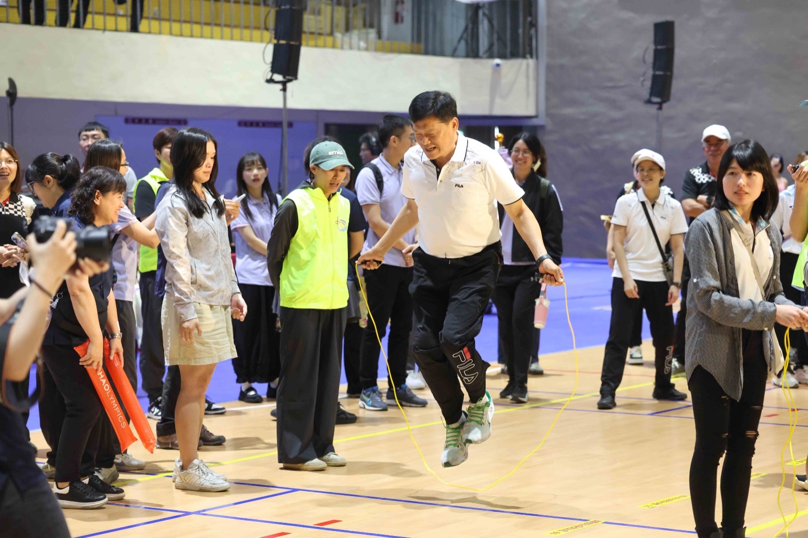 今日活動共吸引60個機關組隊PK,現場氣氛熱血沸騰。盧秀燕在台上也不忘展現幽默感,她提醒,每個機關的專業背景不同,面對體力充沛的警察與消防同仁,她特別叮嚀要「手下留情」,趣味發言讓台下基層同仁笑聲不斷。市議會秘書長彭乾銘今日也代表議會率隊參加,他表示,台中市各項建設表現亮眼,人口逐年成長已是全國都市指標,他代表議會向市府表達最高敬意,盼藉由活動凝聚能量,繼續為市民創造幸福感。