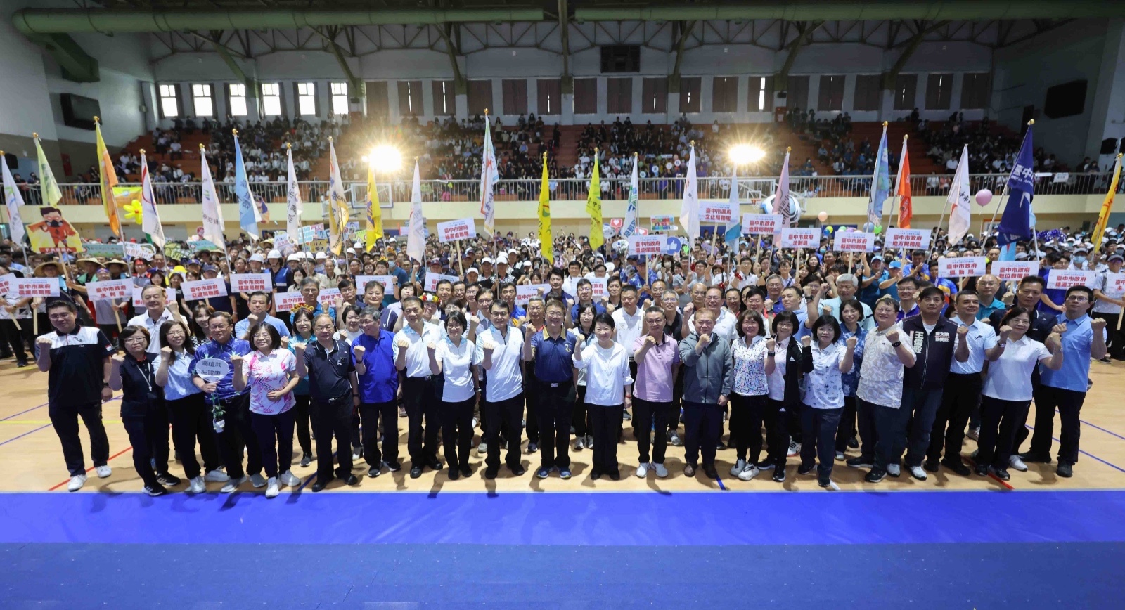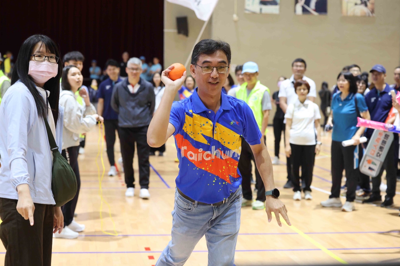 人事處長陳月春說明,此次運動會包含市議會、市府一、二級機關與區公所,共有超過2,800位同仁參與。除了由國立台灣體育運動大學帶來的精彩體操表演外,賽事更安排了定向越野、匹克球及法式滾球等全民運動項目。為帶動全場氣氛,現場特別規劃機關首長限定的「幸福台中大連線」趣味競賽,將跳繩、棒球九宮格與市政問答串聯,由首長帶頭運動,生動呈現市政建設成果。