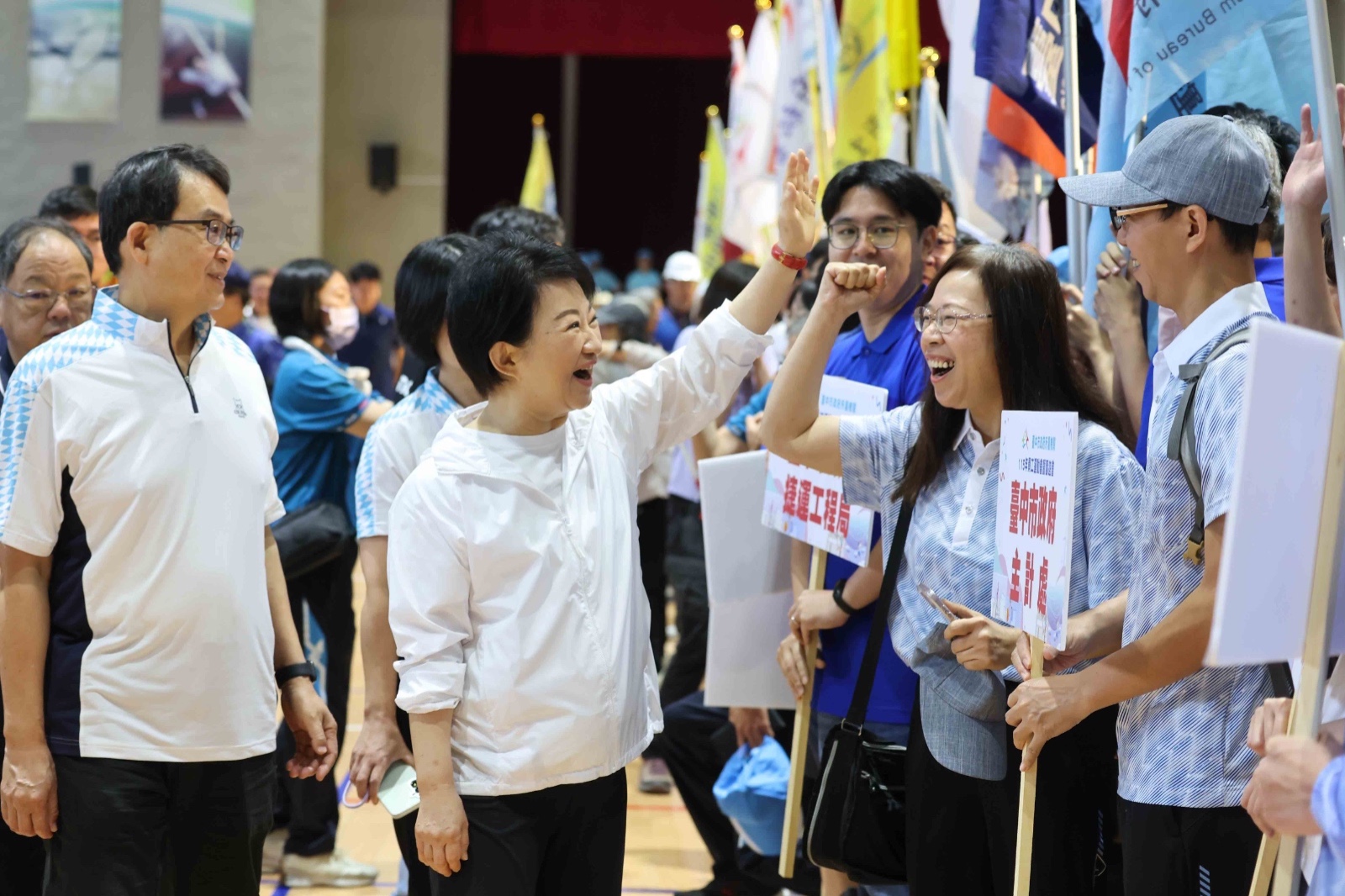 今日包含立法院副院長江啟臣、中興大學校長詹富智、市府秘書長黃崇典、副秘書長張大春及多位市議員、局處首長均出席盛會,現場透過趣味競賽與園遊會攤位,展現市府團隊在嚴謹公務之外,充滿活力與凝聚力的一面。