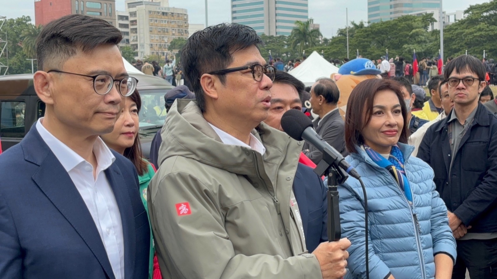 115年元旦升旗典禮於高雄市文化中心舉行,市長陳其邁率領局處首長及議會成員共同出席,市長受訪時說到,台海區域穩定需要東亞各國共同維持,同時批評日前中共發起環台軍演是片面破壞和平狀態,這並非兩岸人民所樂見。 陳其邁表示,此次是以市長身分所參加的最後一屆元旦升旗,還是要以平常心面對,不僅是今天來參演的軍警消的夥伴們,更要對在環台軍演中站在第一線的守護家園的國軍弟兄姊妹們致敬,可以說是24小時不間斷的嚴守台灣安全,謝謝他們固守台灣,希望新的一年,立法院能夠儘速的通過國防預算,強化台灣自我防衛能力,進而穩定社會安全。