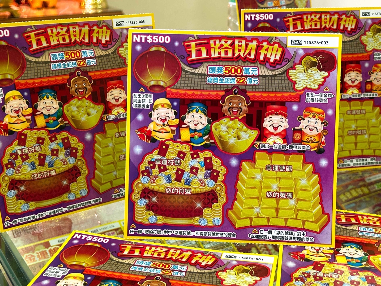 今年獎項配置極度「有感」,頭獎1,200萬元增加至8個,二獎100萬元則高達200個,兩大獎項的個數皆打破歷年紀錄。票面設計以鮮豔亮紅搭配閃爍金色光芒的「12,000,000」字樣,總中獎率高達70%**,絕對是馬年開運的首選。 財神賜福與馬年專屬:5款新品總獎金逾128億元 除了千萬級大獎,台彩亦同步推出多款趣味十足的新品,滿足各類玩家需求: