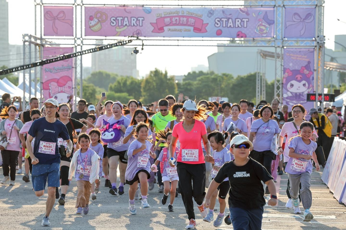 在賽前,專業教練帶領參加者進行親子暖身操,結合美樂蒂與酷洛米的主題舞步,讓孩子們在模仿吉祥物動作中增進互動,輕鬆活動筋骨,為路跑做好準備。