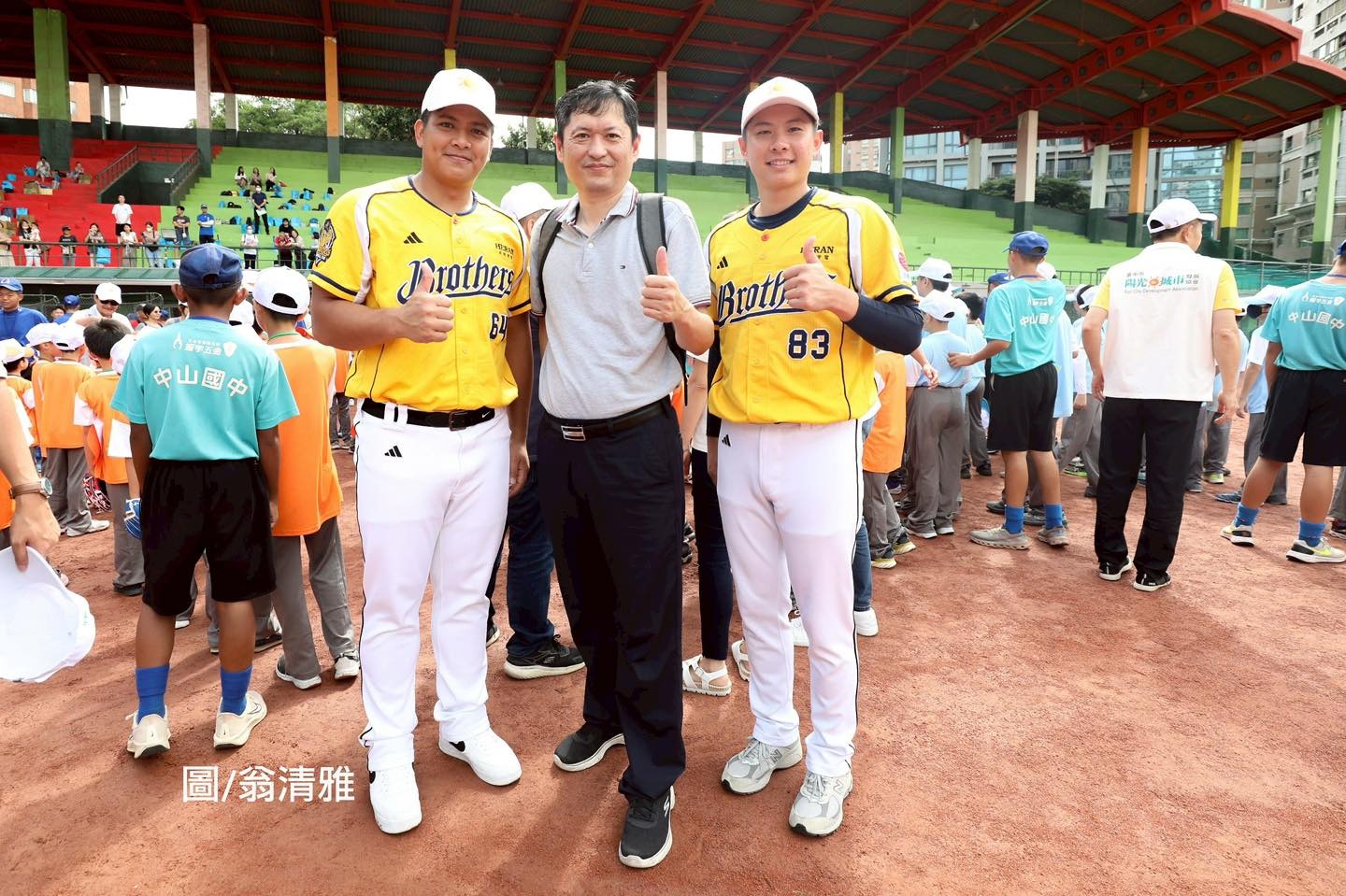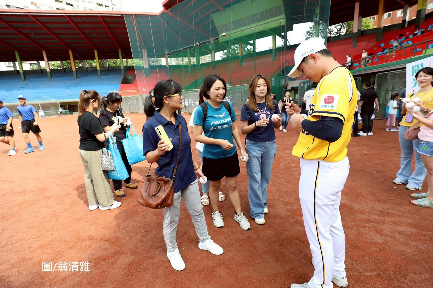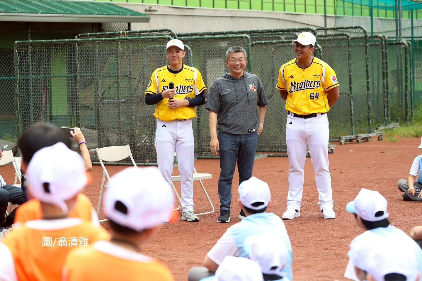有超高人氣的中信球星黃恩賜與伍立辰一出現,現場家長立馬變成粉絲,拿著簽名球追著球星跑,現場排起長長人龍讓兩人簽名,兩位球星鼓勵小學員在營隊中,能夠好好享受打棒球的樂趣,並學習團隊合作精神與態度,為自己的童年在球場上留下珍貴的回憶。