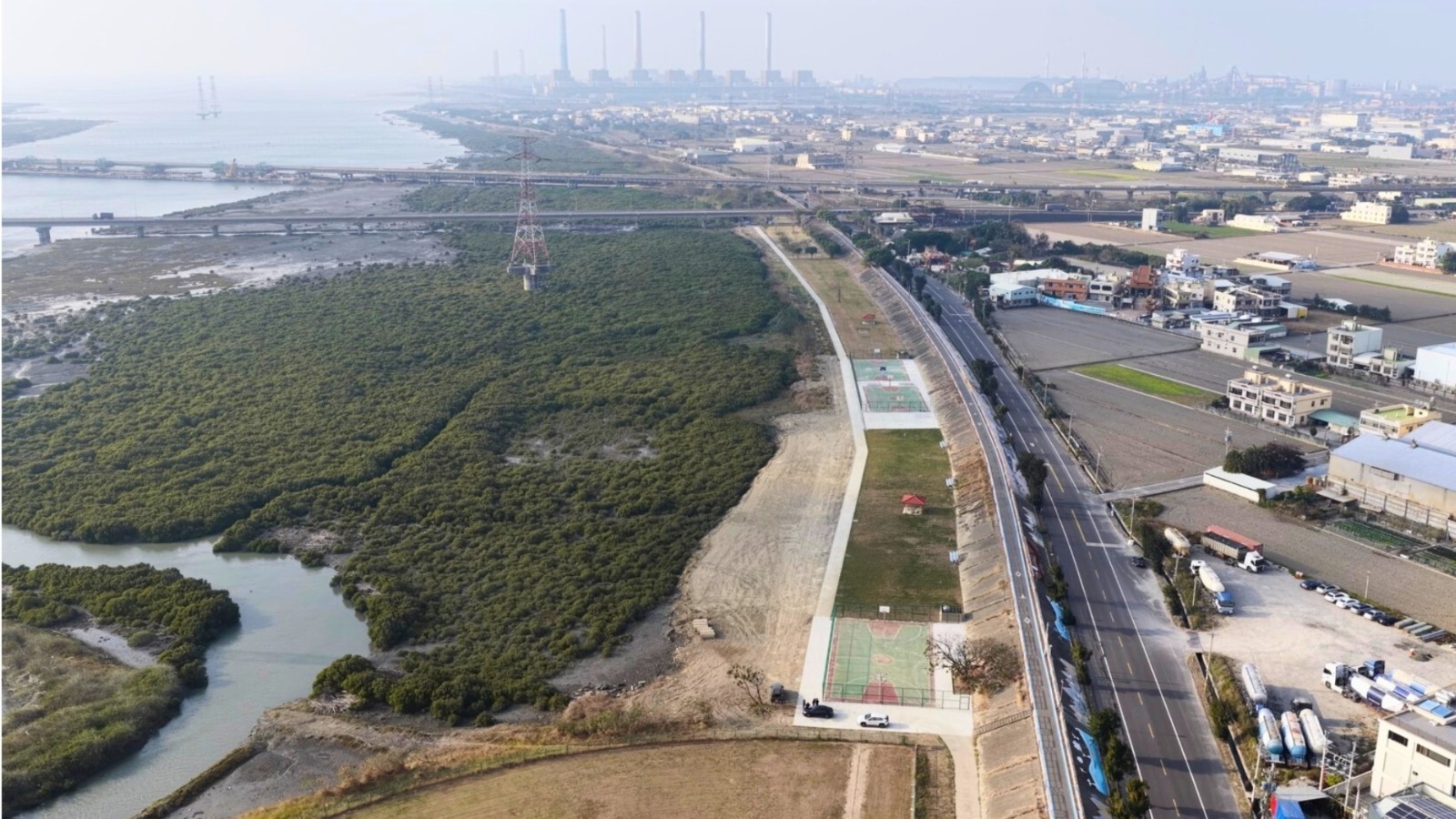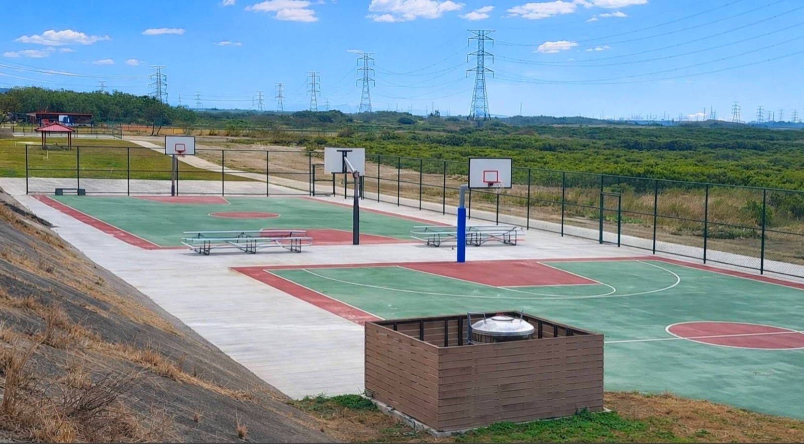 隨著第二期工程在去年底完工並陸續開放,公園的機能展現了從「點」到「線」的質變。在地方積極爭取下,結合台電促協金與市府預算,第二期工程聚焦於場域的「串聯」與「加值」。除了完善內部維修便道,讓壘球場、籃球場、足球場與槌球場之間不再有隔閡,大幅提升器材運送與身障朋友的通行便利性外,更貼心增設了壘球投捕練習場,讓基層選手擁有更完整的訓練空間。