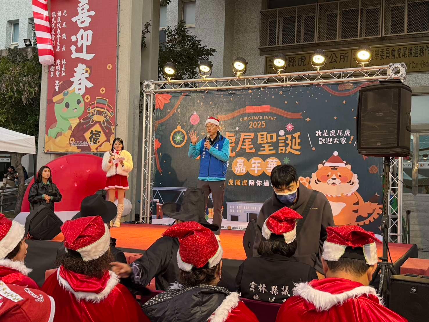 當製糖季的甜美香氣遇上聖誕節的溫馨浪漫,虎尾小鎮展現了前所未有的城市魅力!今(25)日由虎尾鎮公所主辦、雲林縣政府經費補助,並由虎尾魅力商圈執行的「2025虎尾聖誕嘉年華」於虎尾鎮公所前熱鬧登場。不僅有30多家在地品牌特色市集與夢幻旋轉木馬,雲林首座由公所與學界聯手打造的城市形象IP吉祥物「虎尾虎」也首度亮相踩街,圓滾滾的萌樣瞬間奪走全場目光,為虎尾城市行銷開創全新紀元。