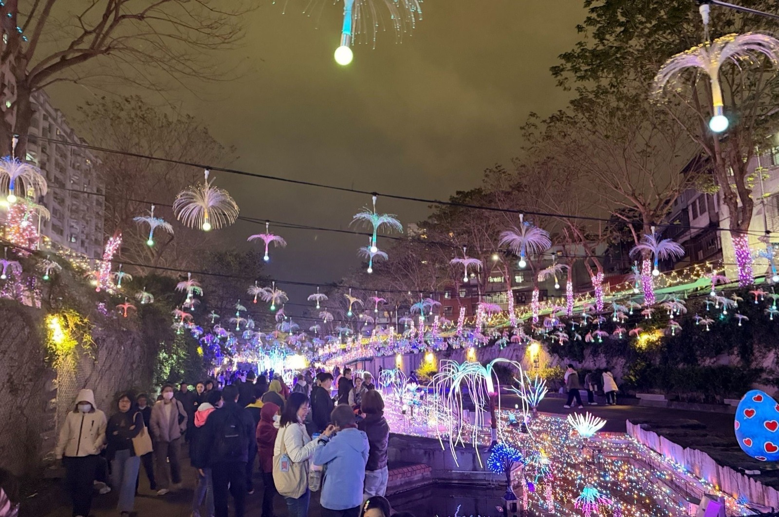 看著中港大排轉變的在地居民周小姐感性表示,過去曾被視為大臭水溝的廊道,如今已成為新莊人休閒、散步的首選地點。尤其是每逢3月白色情人節,與家人漫步在浪漫的星河環境中,已成為在地人一年一度最期待的盛事。水利局呼籲,快閃活動將於3月14日準時展開,禮物數量有限送完為止,歡迎大家揪團前來中港大排,共同捕捉這份限時放送的春日浪漫。