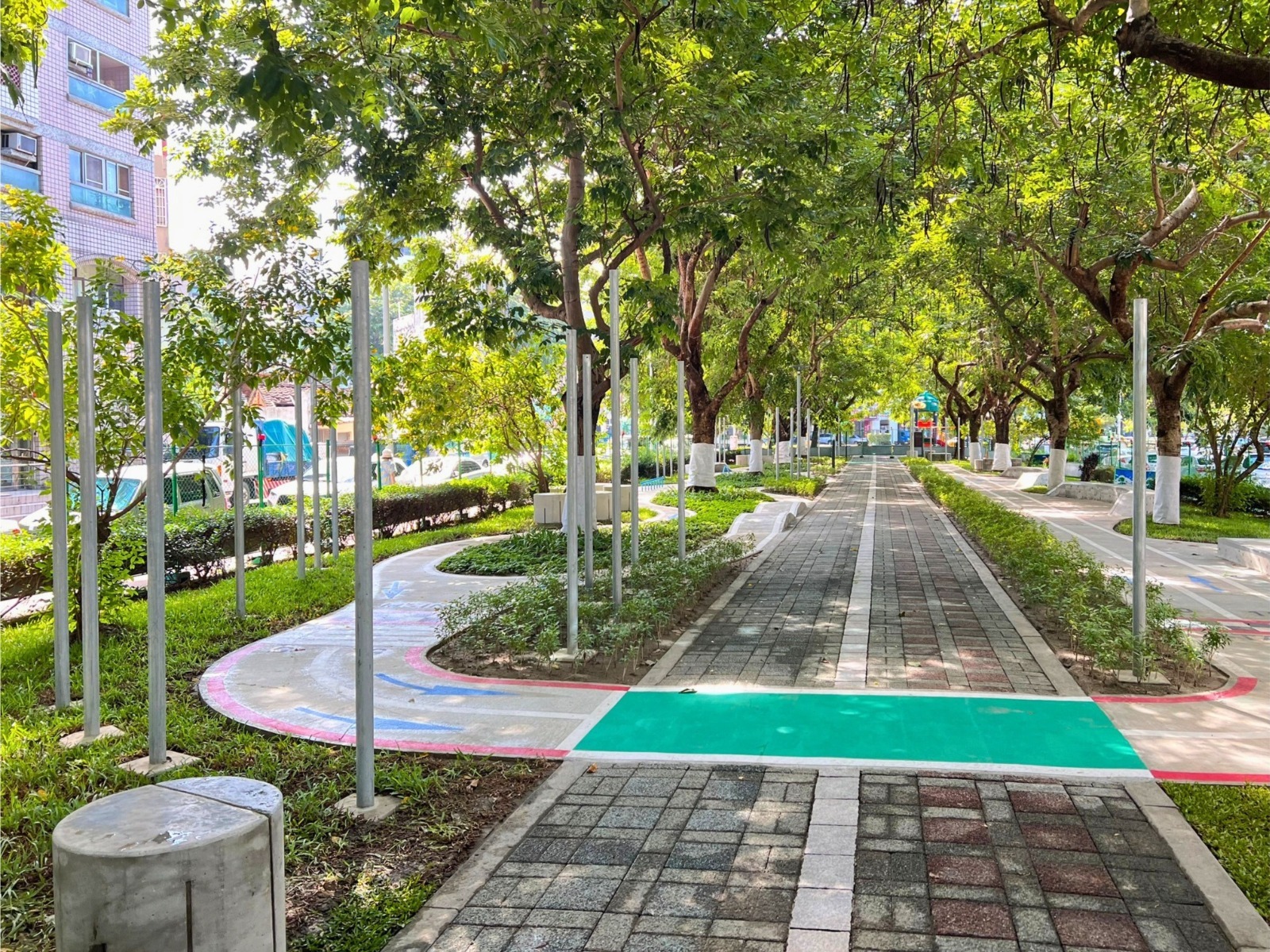 西區梅川綠園道一直是居民喜愛的休憩地點-新設親子滑板場更為這片綠意帶來新的活力。圖/台中市運動局