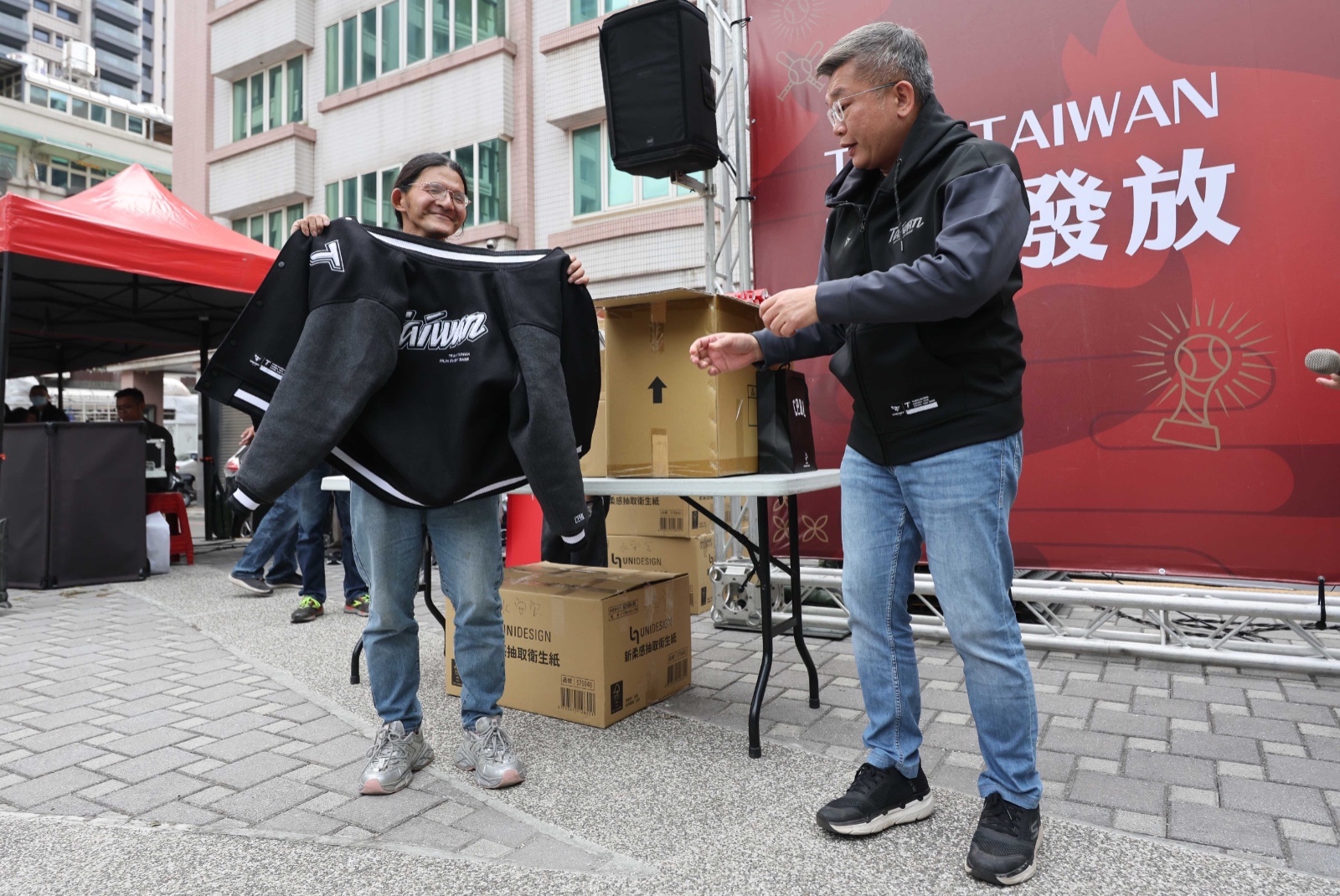 立法委員蔡其昌一早選在家鄉台中清水親自首發,吸引超過2000人排隊,隊伍一度延展至周邊馬路。排在首位的民眾表示,自己凌晨三點就到場守候,只為搶到這份象徵台灣精神的祝福。 下午水安宮場更有鐵粉看上會長穿的外套,該名鐵粉看著會長身上穿著的最新款「Team Taiwan」應援外套,突如其來地提議:「會長,這件外套太好看了,能不能直接送給我?」面對這項大膽要求,蔡其昌豪爽大笑,隨即在眾目睽睽下帥氣脫掉身上的外套,親手交給這名幸運粉絲,並拍肩鼓勵,展現極高親和力,現場歡呼聲震天,氣氛瞬間沸騰。