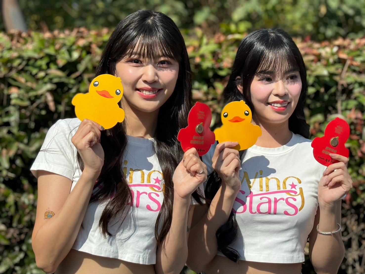 中華職棒會長蔡其昌與台鋼雄鷹Wing Stars 啦啦隊女孩一同在高雄原生植物園發放新春紅包,現場球迷熱情捧場。圖/記者宋瑞斌攝影