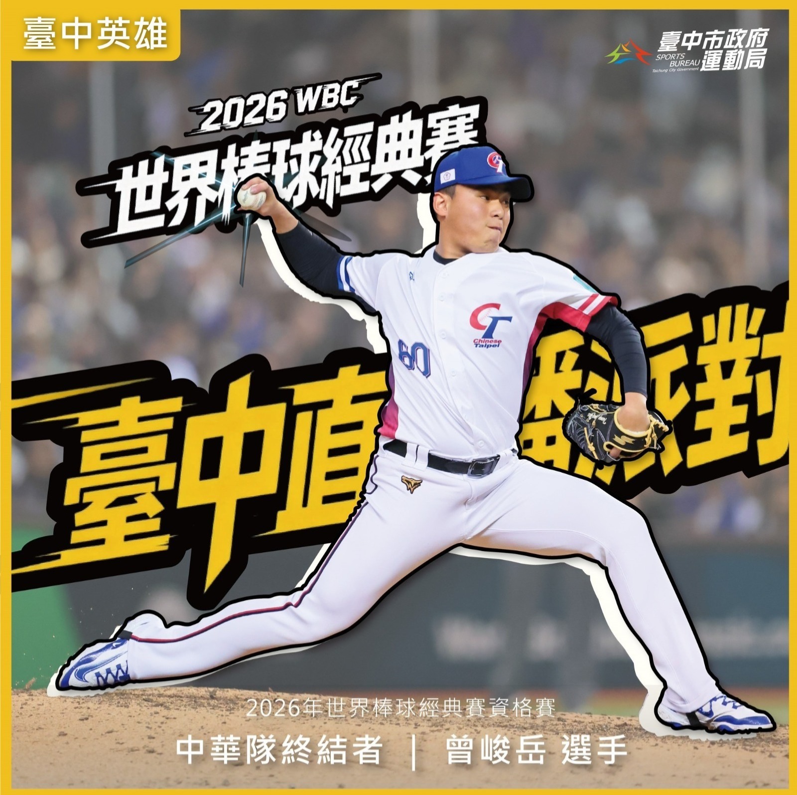 臺中英雄」曾峻岳由臺中三級棒球體系培育,以優異的投球表現捍衛中華隊的勝利希望。圖/台中市政府