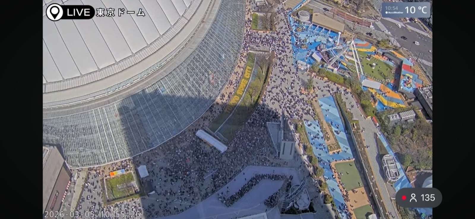 東京巨蛋湧入大批球迷,為各自心儀球隊應援。圖/擷取至東京巨蛋YT(@TokyoDomeCity_Official)