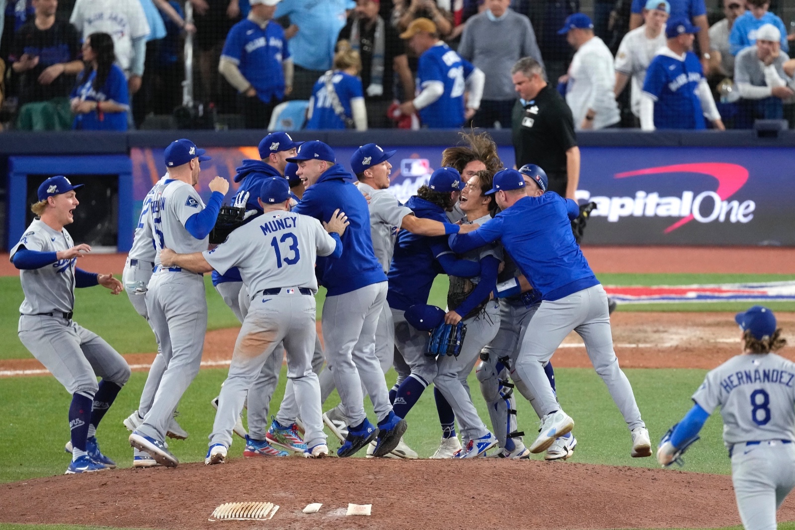 道奇在第四局靠T.赫南德茲(Teoscar Hernandez)高飛犧牲打追回1分,六局上再靠艾德曼(Tommy Edman)安打追至1分差。不過藍鳥隨即反擊,克萊門特(Ernie Clement)與吉梅涅茲(Andrés Giménez)串聯安打,將比分改寫為4:2。 八局上,道奇重砲馬恩西(Max Muncy)轟出陽春砲,縮小差距。九局上藍鳥守護神霍夫曼(Jeff Hoffman)在一出局後失手,被羅哈斯(Miguel Rojas)轟出追平全壘打,戰局4:4再度重置。九局下藍鳥攻佔滿壘,道奇臨危換上山本由伸,他沉著製造滾地球封殺本壘,再逼出外野飛球化解危機,將比賽拖入延長。