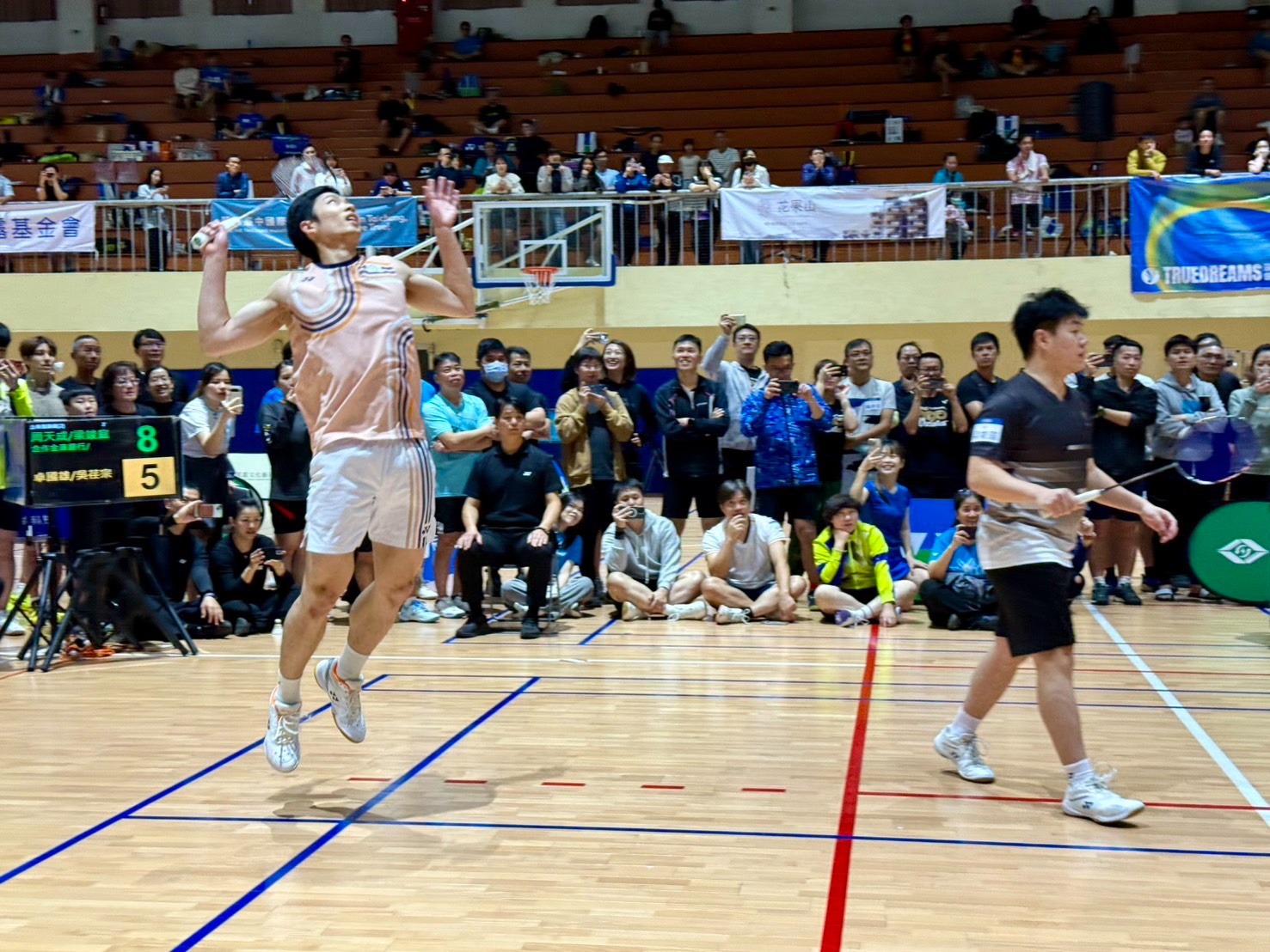 臺灣羽球一哥-周天成驚喜現身-為賽事掀起最高潮。圖/台中市運動局